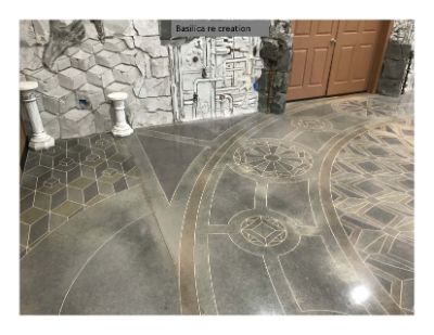 As part of a Decorative Concrete Institute polished concrete class, Bob and Lee Ann Harris, and students, replicated floors found in Venice, Italy. In particular, they mimicked the +450-year-old floors in the Basilica De Salute, a place the couple had visited often.