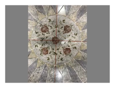 Only two tools were used to score the design: a shop vac to control airborne dust, and a 4-inch hand grinder. The Harrises estimate the basilica reproduction consisted of around 13,000+ individual cuts.