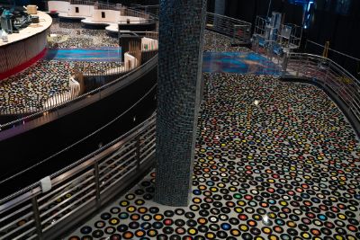 The owners of the Hard Rock Hotel and Casino wanted a unique floor, and Glossy Floors delivered. Featuring 6,300 vinyl 45 rpm records secured in place with epoxy, the +2,800-square-foot floor was two years in the making.