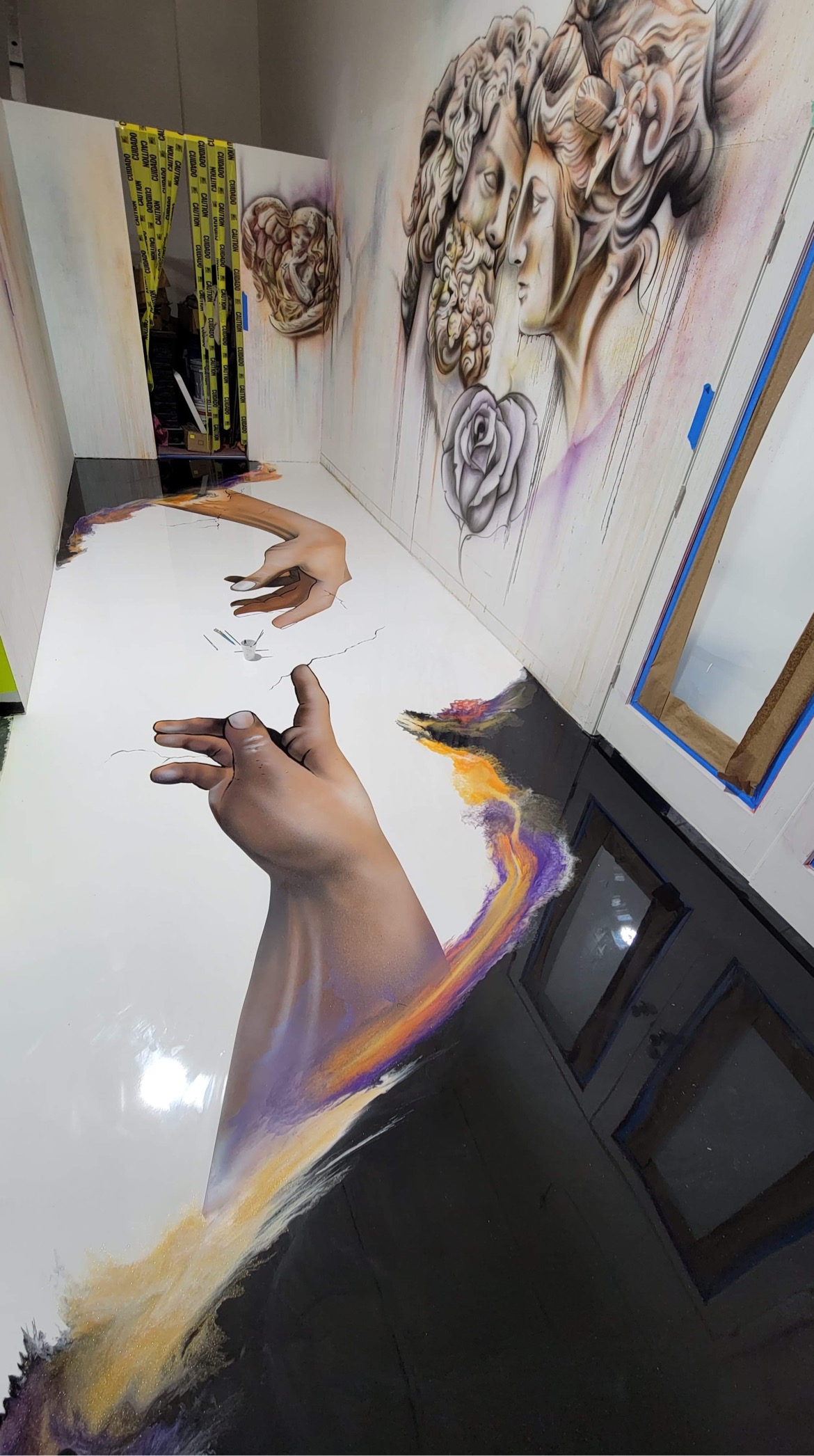 Located in the heart of Dallas’ vibrant Design District—an area known for its artistic expression and creative innovation—this project brought to you by Epoxy Guys was the perfect opportunity to merge functional flooring with fine art. The client wanted more than durability they wanted a statement. We delivered a high-performance epoxy system that not only met industrial standards but also served as a canvas for a custom interpretation of Michelangelo’s Hands of God, seamlessly embedded into the floor.