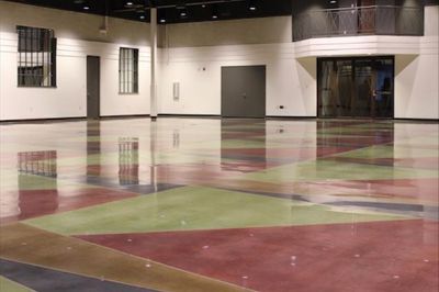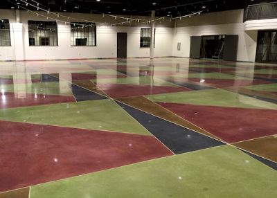 Colors and pattern were chosen to match the floors in other areas of the museum, using a combination of 4 dyes. The floor was given an 800 grit finish, providing ample shine and providing an amazing backdrop to the classic automobiles that now occupy the finished space.