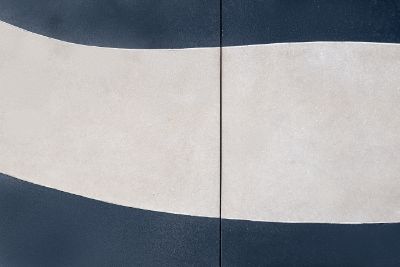 Penick achieved all the project's design elements including a green glass band that meanders throughout the project, fine mirror glass embedded on the surface, decorative saw cuts, stain superimposed on the surface to simulate a leopard pattern, and large bands of quarried stone finish.
