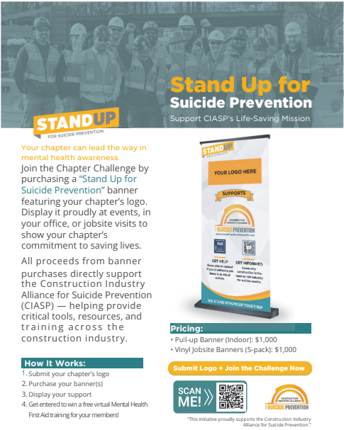 As part of ASCC’s ongoing commitment to mental health and suicide prevention, I want to take a moment to remind our members of our partnership with the Construction Industry Alliance for Suicide Prevention (CIASP) and encourage everyone to take part in the CIASP Banner Program.